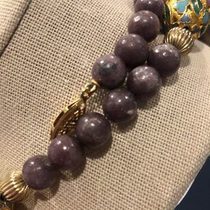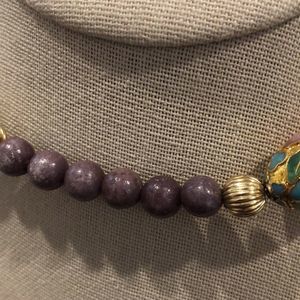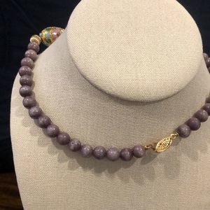 Vintage Amethyst Beads and Gold Floral Cloisonné Enamel Beaded Necklace