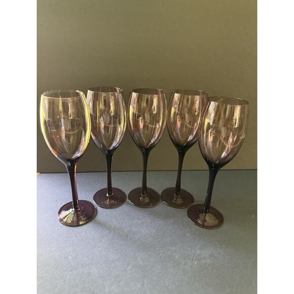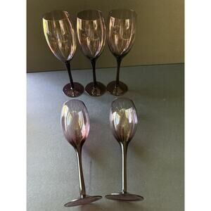 Vintage Amethyst Champagne Flutes Glasses Purple Set 5 Cocktail Barware Modern