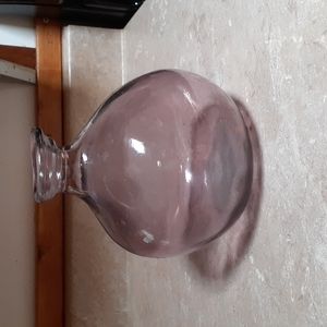 Purple glass vase/handleless jug. Looks handmade. Handwashed gently with Dawn dishsoap and warm water. No maker's mark or writing. Small rust stains inside on the bottom. Would be great with a macrame hanging rope attached or as an addition to a lovely colored glass collection.
