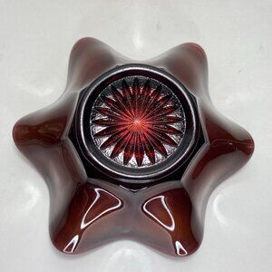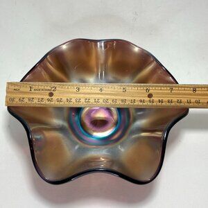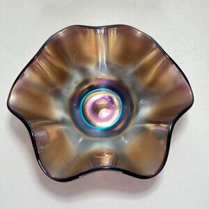 Vintage Amethyst Scallop Carnival Glass Iridescent Ruffled Bowl 8”
