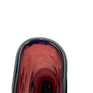 Hand blown in Mexico, this vase is an exquisite piece of collectible decorative art. The fan shape and generous, thick amethyst glass make it a unique addition to any collection, while the clear base adds a touch of modernity. Perfect for use as a centerpiece or display item, this vase is substantial in weight and sure to impress.