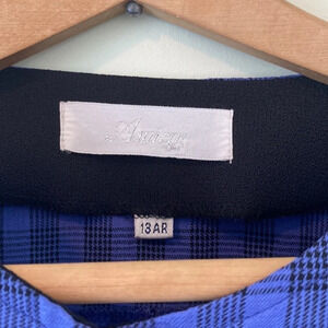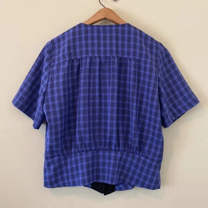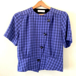 Vintage purple and black plaid button up top. Beautiful buttons. Very retro feel. Like a periwinkle purple/blue