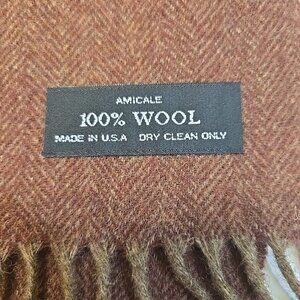 Vintage Amicale 100% Wool Scarf Brown Herringbone Chevron Fringe Made in USA