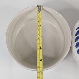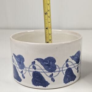 This Vintage Amnion Triana Salt Glaze Stoneware Floral Print Butter Crock with Lid is a charming addition to any kitchen. Made of stoneware with a unique gray and blue floral print, this medium-sized crock has a lipped lid and a round shape. The vintage piece is from Westerwald, United States, and it features a single compartment, perfect for storing butter or other small items. Standing at 16" in height and 7" in width, this original collectible is a functional and decorative item for adult use.