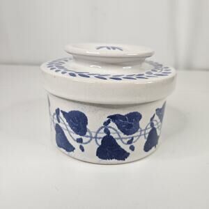 Vintage Amnion Triana Salt Glaze Stoneware Floral Print Butter Crock W Lid