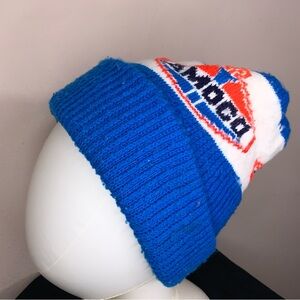 Vintage Amoco Knit Beanie Hat Ski Cap Winter Advertising Oil Company Retro