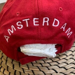 Amsterdam Holland Red Embroidered Corduroy 100% Cotton Cap Hat with adjustable back in excellent Preowned condition.