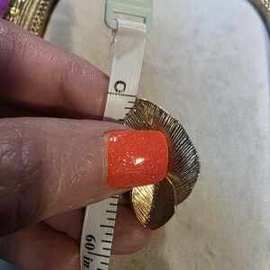 Elegant gold leaf brooch with intricate detailing, made by Amway. Perfect for adding a touch of nature-inspired elegance to any outfit.