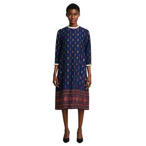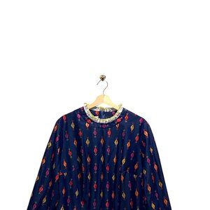 Vintage Amy Adams Vintage Printed Midi Dress Blue Size L 60’s Mid Century Modern