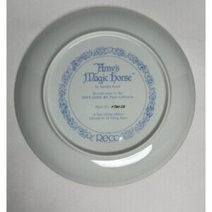 This Amy's Magic Horse Collector Plate by Sandra Kuck is a must-have for any collector of round plates. The plate has a diameter of 9.25 inches and features a beautiful horse design that is sure to capture anyone's attention. The plate was manufactured in the 1980s, making it a unique and rare item for collectors to add to their collection. The brand of this collector plate is Reco, and it falls under the category of Collectibles and Decorative Collectibles, specifically Collector Plates. Add this stunning piece to your collection today!