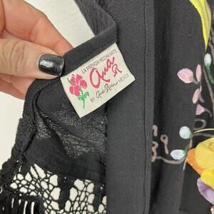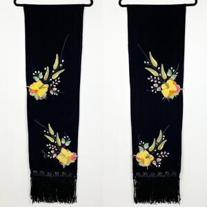 Vintage Ana Rosa Signed Scarf Mexico Art Hand Painted Crafted Fringe Shawl Black