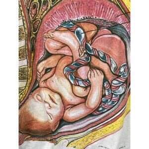 Vintage Anatomical Chart Company 1987 baby in the womb t-shirt. Single stitch. There is some discoloration on the back.