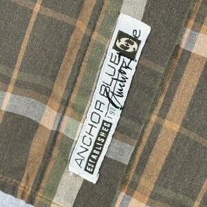 Vintage Anchor Blue Button Up Shirt Mens 2XL Green Plaid Stripes Classic Comfort Outdoor Trendy Y2K
