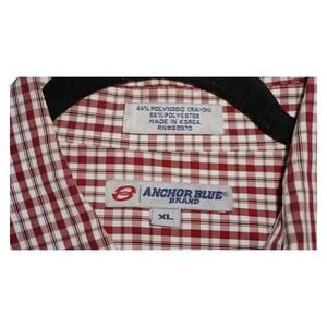 Vintage Anchor Blue XL Short Sleeve Button Up Shirt Red Gingham Check Plaid Y2K