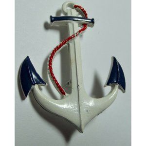 Vintage Anchor Brooch Pin Victorian enamel red white blue patriotic sailor ship
