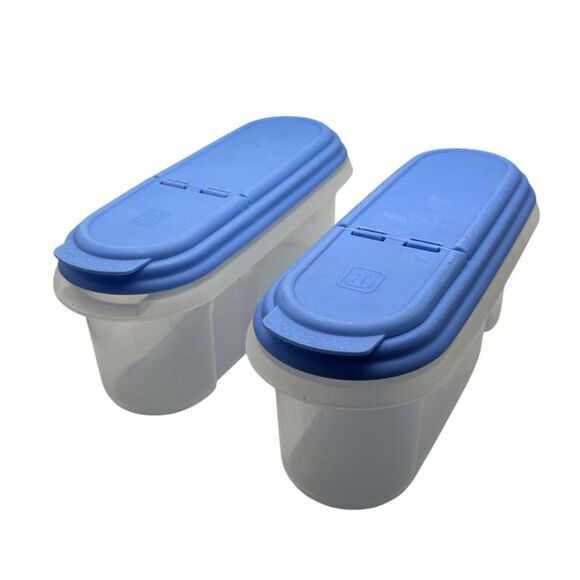 Vintage Anchor Hocking 1.5 QT Plastic Storage Container Blue Lid Set of 2