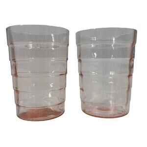 Vintage Anchor Hocking Block Optic Tumbler Glasses Pink Depression Glass