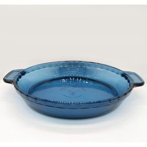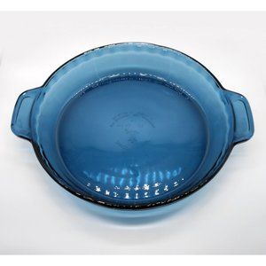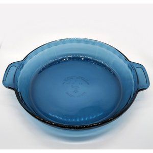 Anchor Hocking clear thick blue glass pie pan dish with scalloped edge - so you can bake in style!