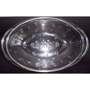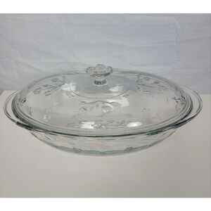 Vintage Anchor Hocking Clear Glass Casserole & Lid w/ Flowers 13" x 8"