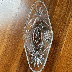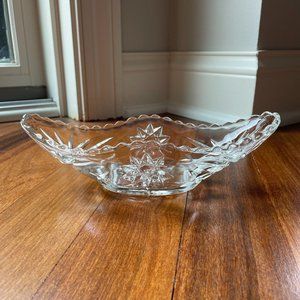 Vintage EAPG Anchor Hocking Clear Glass Oval Serving / Relish Dish / Bowl /Boat with Star Of David Pattern with scalloped edge