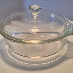 Vintage Anchor Hocking Clear Glass Round 2 Qt Baking Cassserole Dish With Lid