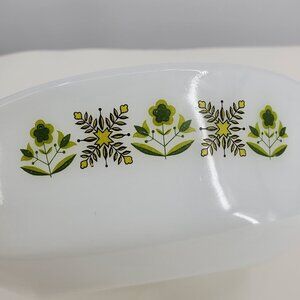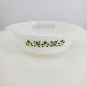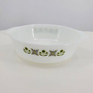 Vintage Anchor Hocking Co Meadow Green Print 2 Circle Casserole Dishes