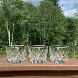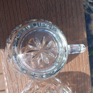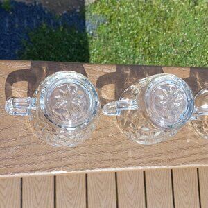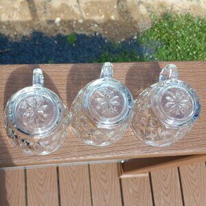 Vintage from the 1970's. Diamond pattern with sunburst bottom. Clear pressed glass. Each measures approximately 2.75" high x 3 .25" opening diameter (4" across with handle). These are in excellent condition, with no chips, cracks, flea bites or any discernable scratches. Set of seven. Comes with 11 plastic hanging hooks for use with a punch bowl. Made in the USA.