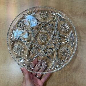 Vintage Anchor Hocking Cut Glass Star Of David MCM Serving Platter 11”