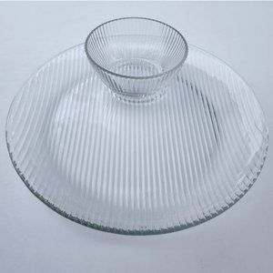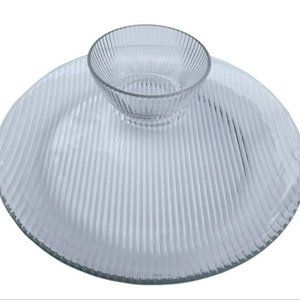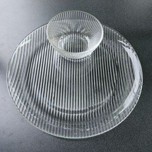 Vintage Anchor Hocking Entertainers Ribbed Glass Relish Chip And Dip Set 2 pc