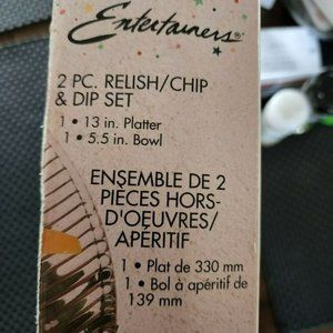 Vintage Anchor Hocking Entertainers Ribbed Glass Relish Chip And Dip Set 2 pcs