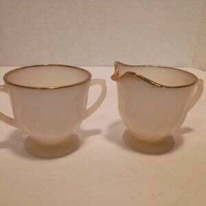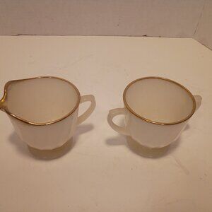 Vintage Anchor Hocking FIRE KING Oven Ware Milk Glass Sugar & Creamer Gold Trim