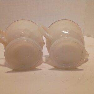 Iconic brand FIRE KING from Mid-Century manufacturer Anchor Hocking--Milk glass in spiral design with gold edges sugar and creamer set. Both in excellent condition, no chips/cracks/flea bites. The gold is not perfect but overall is in good/intact condition. Please see photos.
