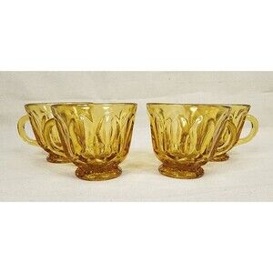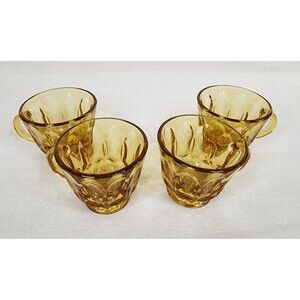 Add a warm retro glow to your table with this set of four Anchor Hocking Fairfield Amber Glass punch cups. Produced between 19721977 in the United States, these pieces feature the bold Fairfield pressed glass pattern with a rich amber tone, perfect for vintage entertaining or holiday gatherings.