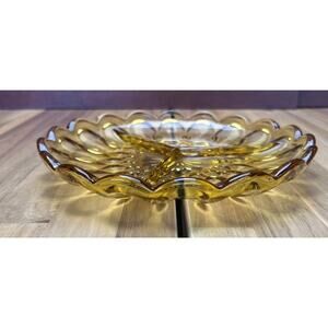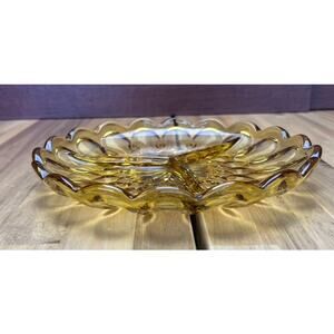Vintage Anchor Hocking Fairfield Divided Relish Dish Amber Honey Gold Tea Party