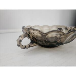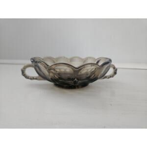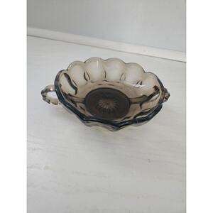 Vintage Anchor Hocking Fairfield Glass Smoke Color Two Handle Open Candy Bowl