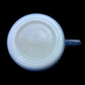The Vintage Anchor Hocking Fire King Blue White Speckled Stackable D-Handle Mug is a mid-century modern coffee mug made in the United States. This round mug features a speckled blue and white design, with a capacity of 8 oz. It is oven-safe and stackable, making it a convenient and stylish addition to any kitchen or dining room. The mug is signed by Anchor Hocking and bears the iconic Fire-King pattern, showcasing its vintage charm and original design from the 1960s. Perfect for all occasions, this unisex adult mug is a unique and collectible piece of decorative cookware.