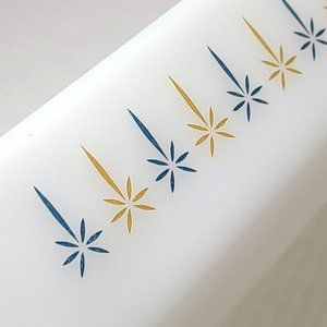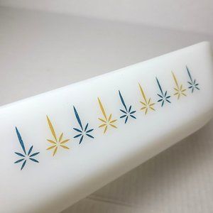 Vintage Anchor Hocking Fire-King Candle Glow Pattern Loaf Baking Pan, 1 Qt 441. A charming and functional addition to your kitchenware collection, perfect for baking your favorite recipes in style.