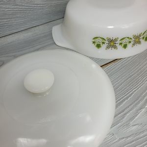 Vintage Anchor Hocking Fire King Green Meadows Round Casserole 1 Quart with Lid