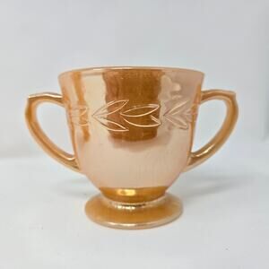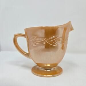 Vintage Anchor Hocking Fire King Peach Luster Laurel Leaf Cream & 2 Open Sugar