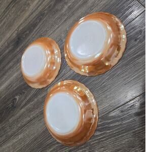 Vintage Anchor Hocking Fire King Peach Luster Shell Set Of 3 Plates 8 inch