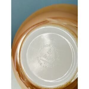 Vintage Anchor Hocking Fire King Peach Lustre Swirl 8 3/8" Round Vegetable Bowl from the mid-20th century. This original, white glass bowl with a peach luster finish and swirl design is part of the Fire King Dinnerware line. Made in the United States, it is oven safe and has an embossed Anchor Hocking Fire King mark on the bottom. Item height is 2 3/8" and it weighs 1 lb 3 ozs.