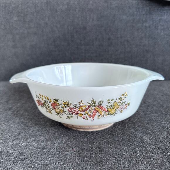 Vintage Anchor Hocking Fire King Vegetable Harvest Casserole Dish 7.5” Wide