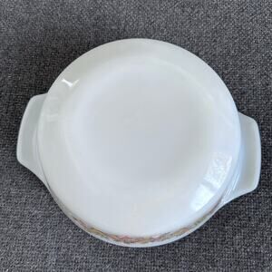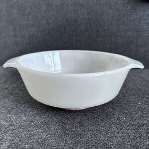 Add a touch of vintage charm to your kitchen with this Anchor Hocking Fire King Vegetable Harvest Casserole Dish. The round, 1 quart dish is made of beautiful, white milk glass. Its backstamp is impressed with the Fire-King product line.