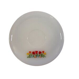 Vintage Anchor Hocking Fire King White Milk Glass With Tulips Saucer 6" Oven Proof
