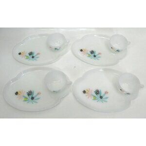 Vintage Anchor Hocking Fire-King Milk Glass Snack 3 Sets 4 Cups & Plates Atomic