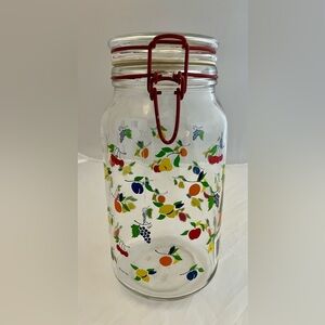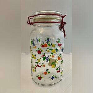 Vintage Anchor Hocking Fruit Pattern Clear Glass Food Storage Jar Canister 1990