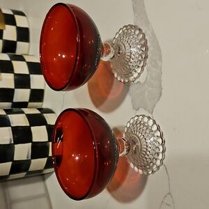Vintage Anchor Hocking Glass Ruby Red Berwick Boopie 2 Piece Champagne Sherbet