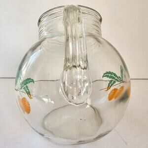 Vintage Anchor Hocking Juice Pitcher Tilt Ball Oranges Leaves '50's Mid Century