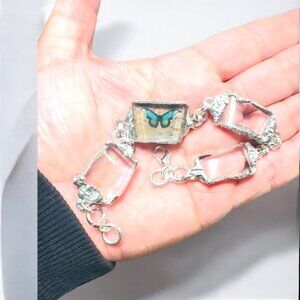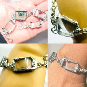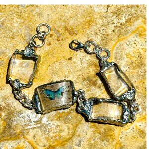 This bracelet tells a story of transformation, where vintage Anchor Hocking lead crystal glass finds new life in artisan silver blend bezels. Each fragment, once part of a timeless glass piece, now gleams with renewed beauty, symbolizing resilience and artistry. A wearable piece of history, merging elegance with sustainability.