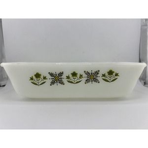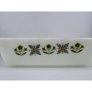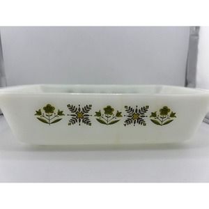 Vintage Anchor Hocking Meadow Green Floral Rectangular Casserole Baking Dish.